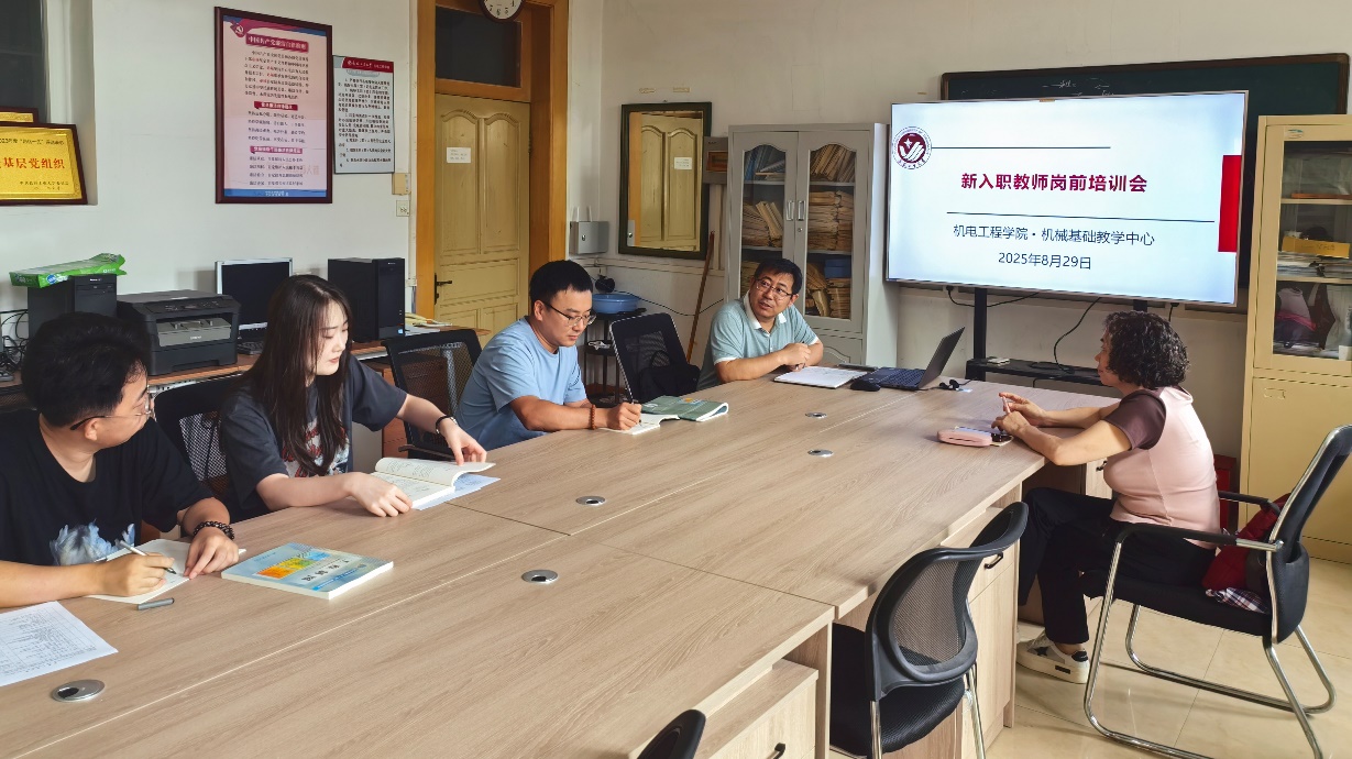 为新入职即将讲授《工程制图》课程的教师开展了“走上讲台”前为期一个月的系统性培训活动。培训会在课程所在部门机械基础教学中心举行。会议由中心主任刘小勇主持,《工程制图》课程负责人陶金老师、李会杰老师参会。两位课程负责人针对《工程制图》课程的具体课程特点、讲授内容、进度安排以及学生特点进行了详细的介绍,分享了各自的课堂教学经验,并制定了接下来一个月内的培训计划。