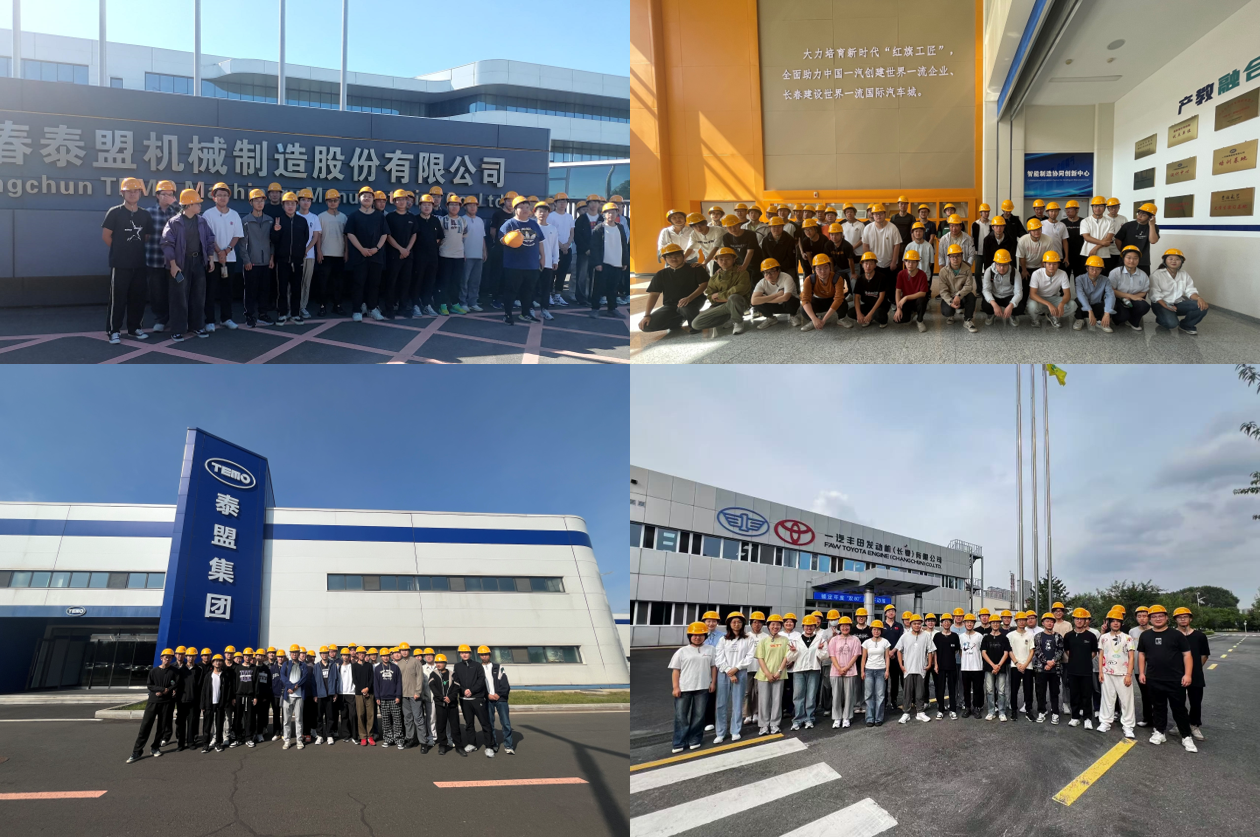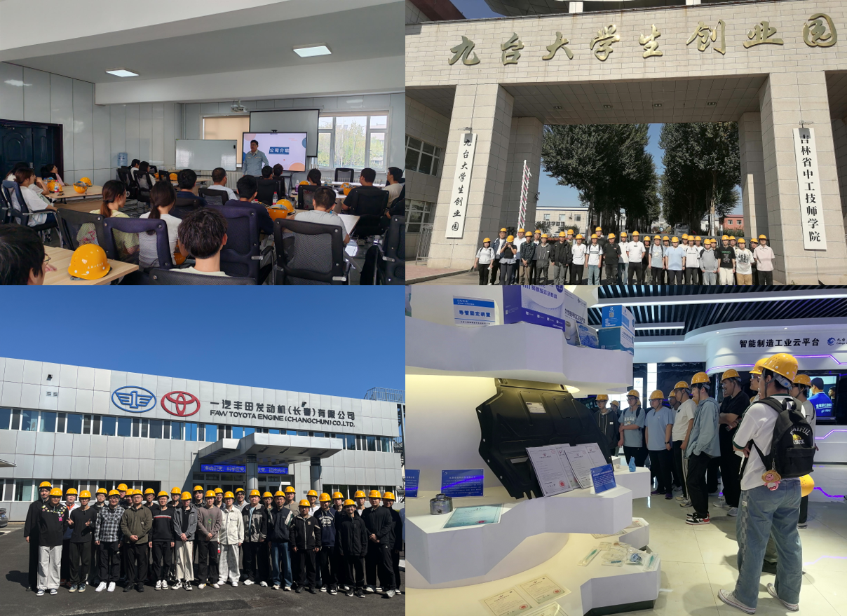 第2-3周,学生分组入驻五大实习基地,开启“沉浸式”企业实践。学生分别前往九台大学生创业园、长春泰盟机械制造股份有限公司、一汽丰田发动机、长春派格汽车塑料技术有限公司、长春汽车职业技术大学进行参观学习。