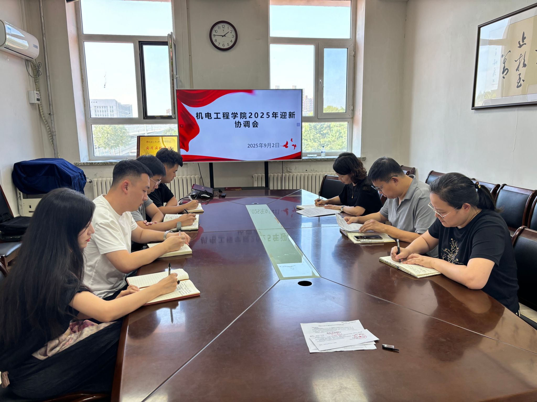 会议首先对迎新工作进行了细致梳理与全面部署,涵盖物料准备、场地布置、氛围营造,以及志愿者的选拔、培训和分工等各个环节。尤其强调新生报到流程的严谨性,将通过现场签到、校园一卡通与宿舍钥匙签收、晚点名等“三重保险”机制,确保每一位新生顺利、安全入学。