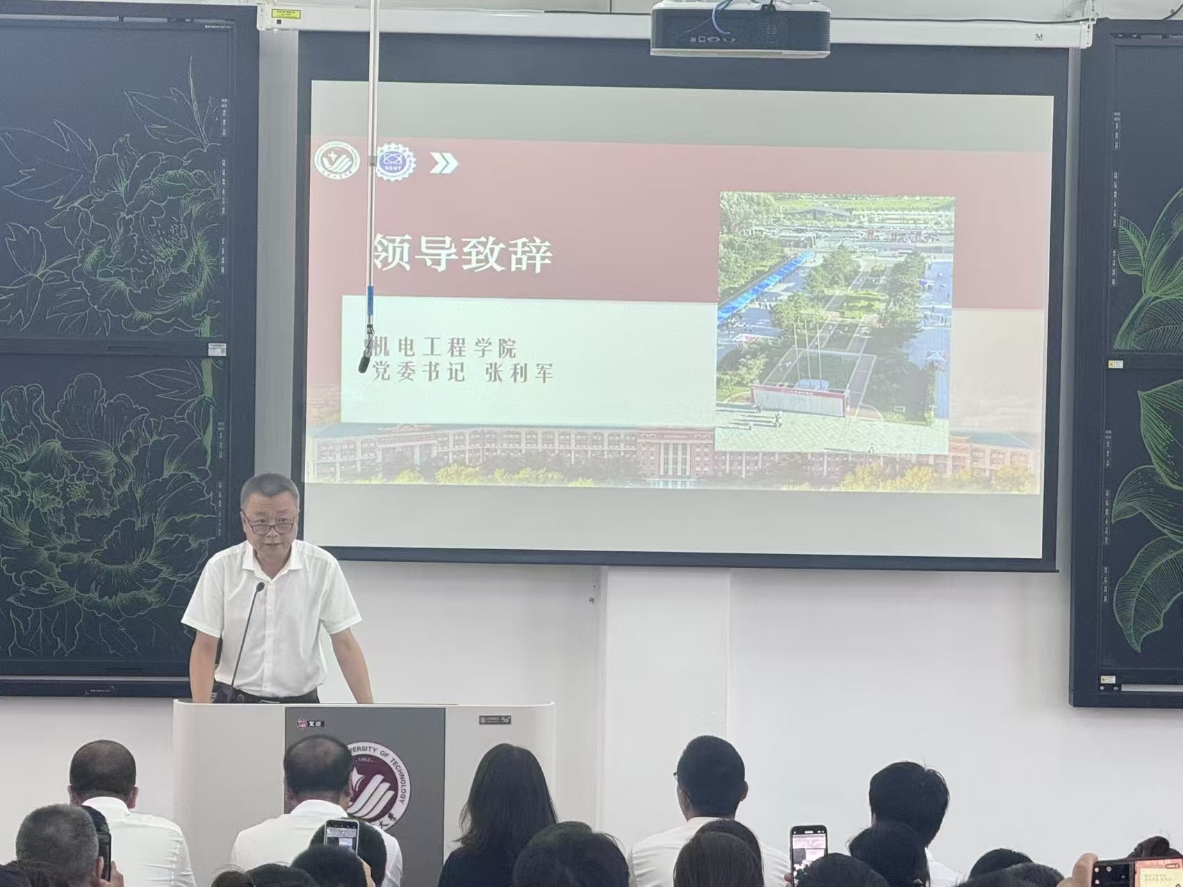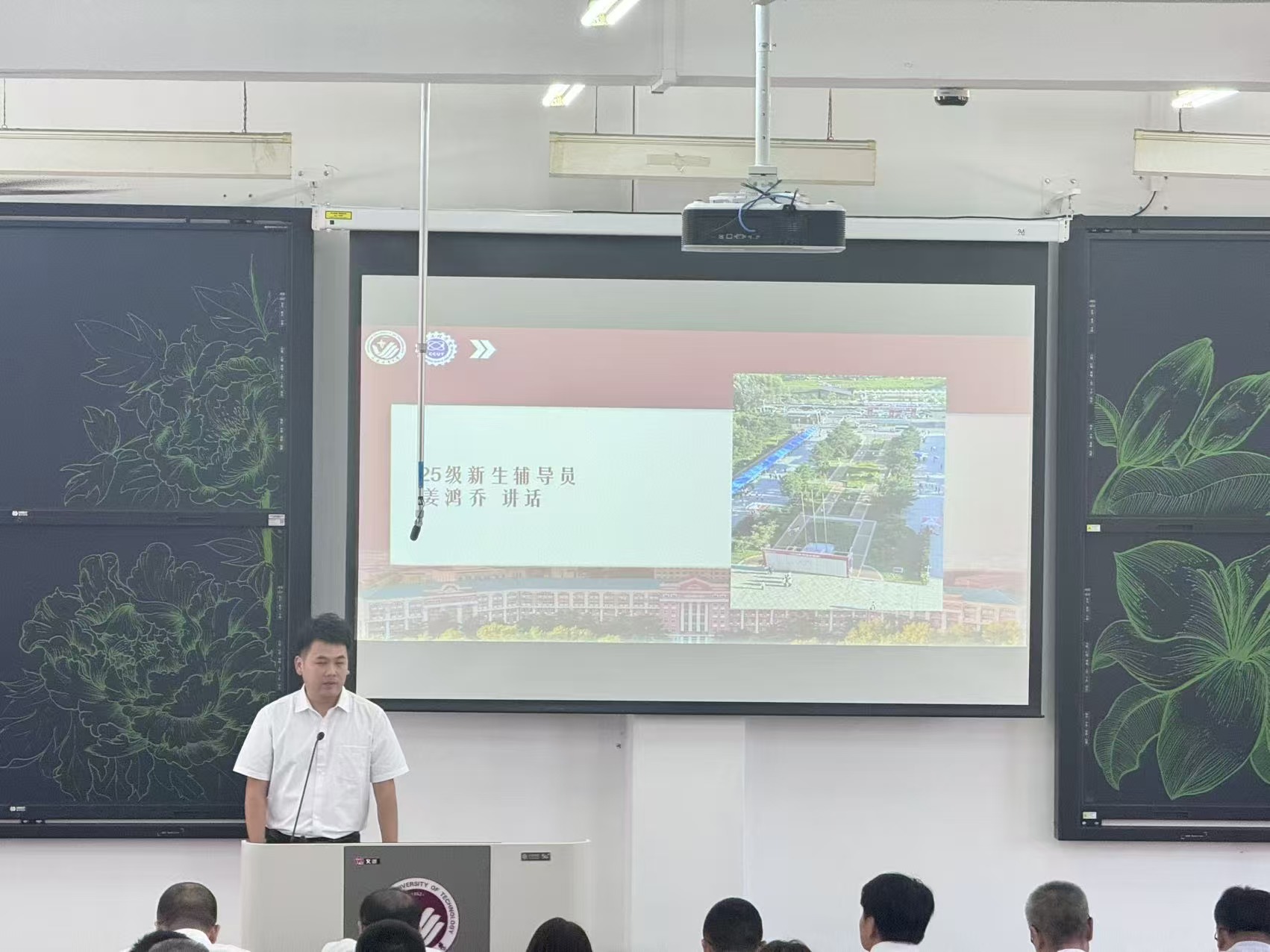最后,2025级新生辅导员姜鸿乔老师发言,他说:大学是孩子独立成长的起点,作为辅导员,将竭尽全力做好他们学习生活的引导者、身心健康的守护者和成才路上的陪伴者。未来的四年,他将与学生们携手同行。请家长们放心,也请多多沟通,共同见证孩子们的蜕变与成长。